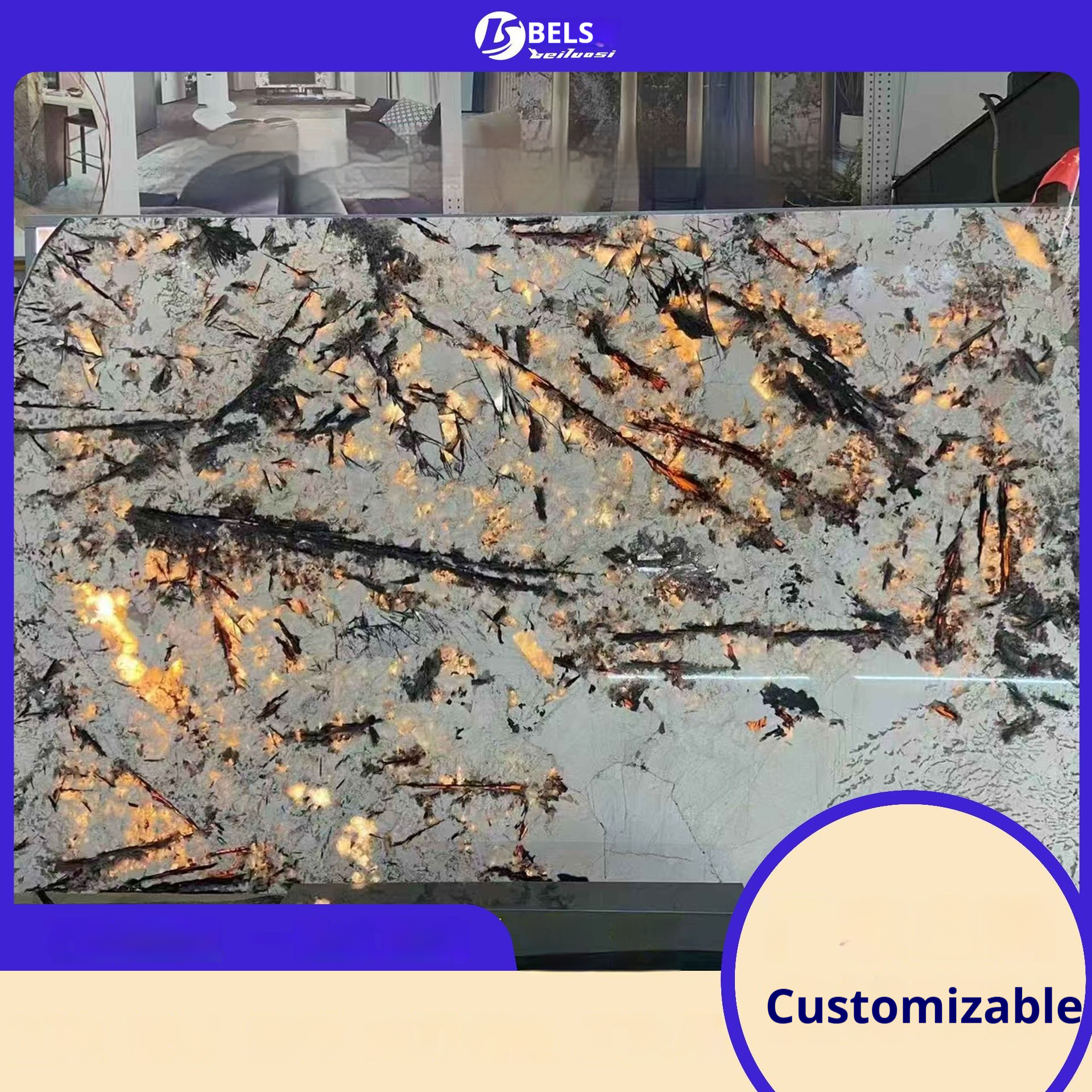 Imported Gold Peacock Luxury Marble: Transparent Slabs for TV Walls Entrances Modern Neo-Chinese Island Tables