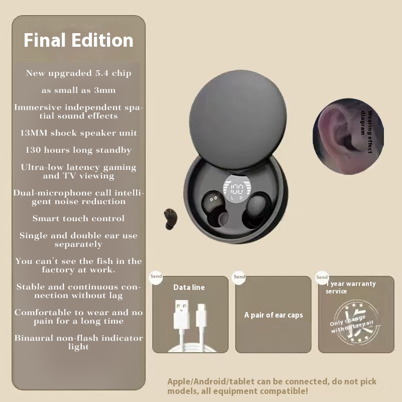 SKU: -Top version - classic black [3mm hidden ears! more - longer battery life] bluetooth 5.4 + 130 hours standby + enc call noise reduction-Official standard-A00162416